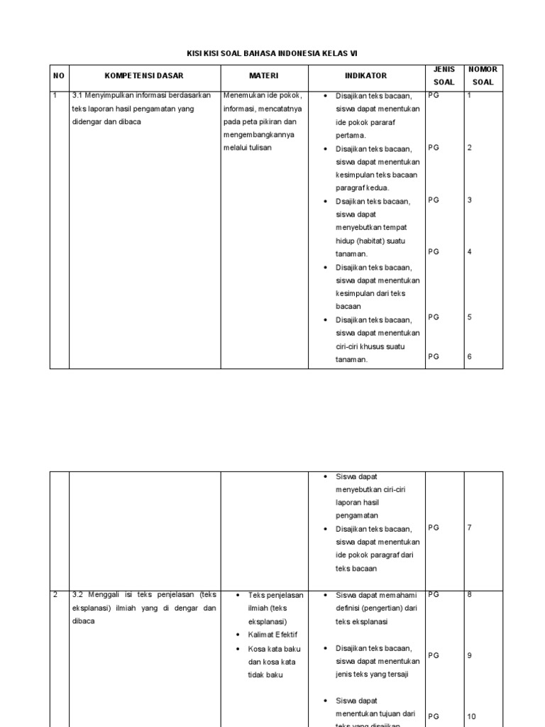 Semester genap di kelas 4 SD merupakan periode penting dalam penguatan literasi siswa. Di tahap ini, pemahaman terhadap bahasa Indonesia tidak hanya sekadar mengenali huruf dan kata, tetapi juga kemampuan membaca, menulis, menyimak, dan berbicara yang lebih mendalam. Menghadapi penilaian akhir semester, guru dan orang tua tentu membutuhkan panduan yang jelas mengenai materi apa saja yang akan diujikan. Artikel ini akan mengupas tuntas kisi-kisi soal Bahasa Indonesia SD Kelas 4 Semester 2, lengkap dengan penjelasan mendalam untuk membantu siswa mempersiapkan diri menjadi sang juara.