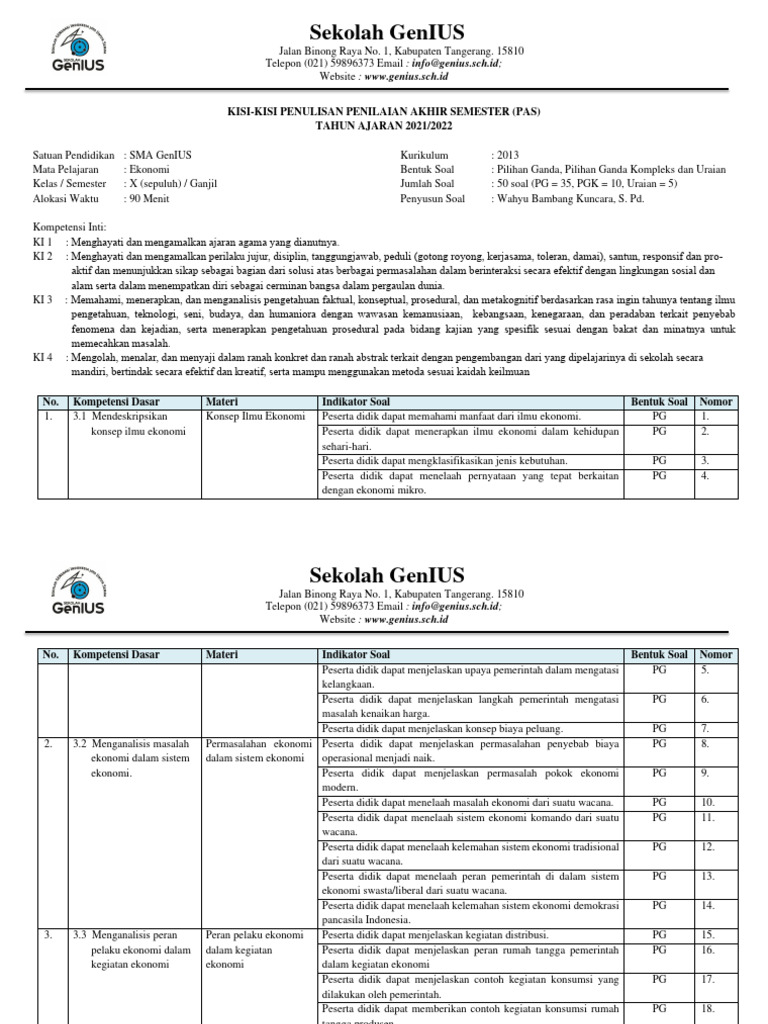 Untuk membantu siswa mempersiapkan diri menghadapi penilaian, pemahaman terhadap kisi-kisi soal menjadi sangat krusial. Kisi-kisi soal bukan sekadar daftar topik, melainkan sebuah peta jalan yang mengarahkan fokus belajar dan memastikan bahwa pemahaman konsep telah tercapai secara komprehensif. Artikel ini akan membedah tuntas kisi-kisi soal Ekonomi Kelas X KD 4.3, memberikan gambaran mendalam mengenai aspek-aspek yang akan diuji, jenis-jenis pertanyaan yang mungkin muncul, serta strategi efektif untuk menghadapinya.