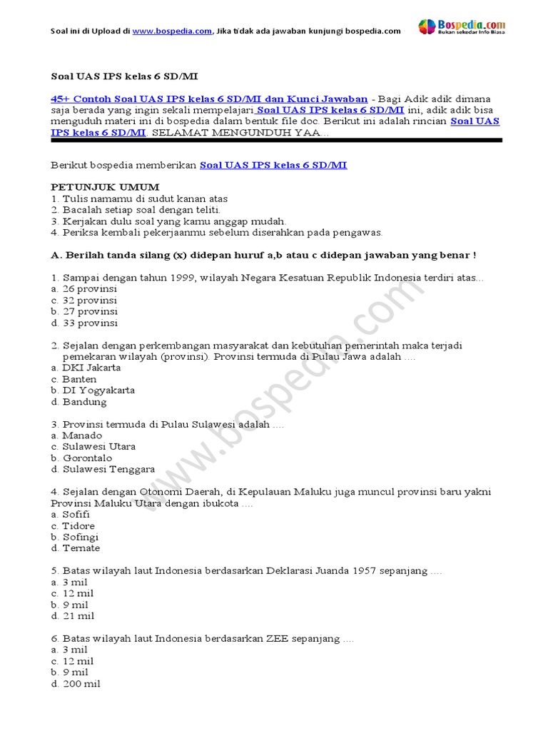 Artikel ini hadir untuk membantu para siswa kelas 6 SD di Kabupaten Tasikmalaya dalam mempersiapkan diri menghadapi UAS IPS Semester 2. Kami akan menyajikan kumpulan contoh soal yang dirancang menyerupai bentuk dan cakupan materi yang umumnya diujikan, dilengkapi dengan pembahasan yang detail. Tujuannya adalah agar siswa tidak hanya terbiasa dengan format soal, tetapi juga memahami konsep-konsep penting yang terkandung di dalamnya.