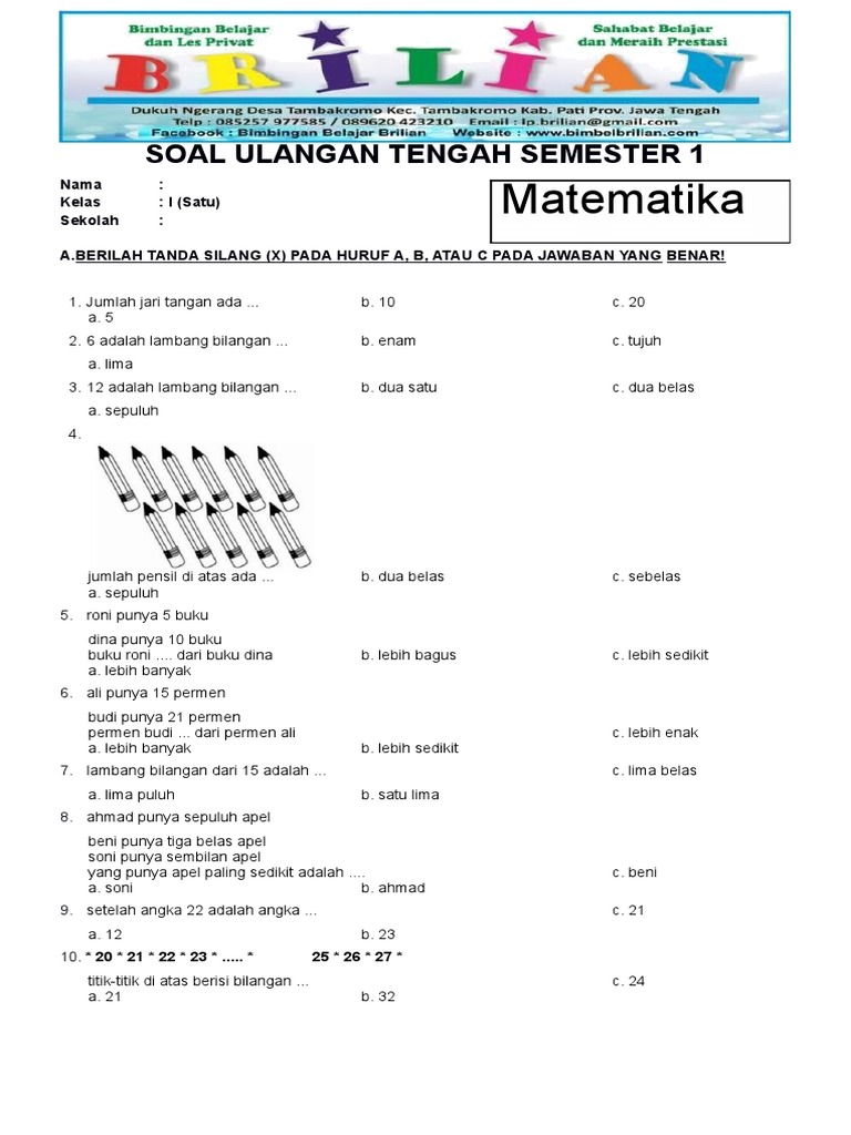 Soal yang "brilian" untuk kelas 1 SD harus memenuhi beberapa kriteria: